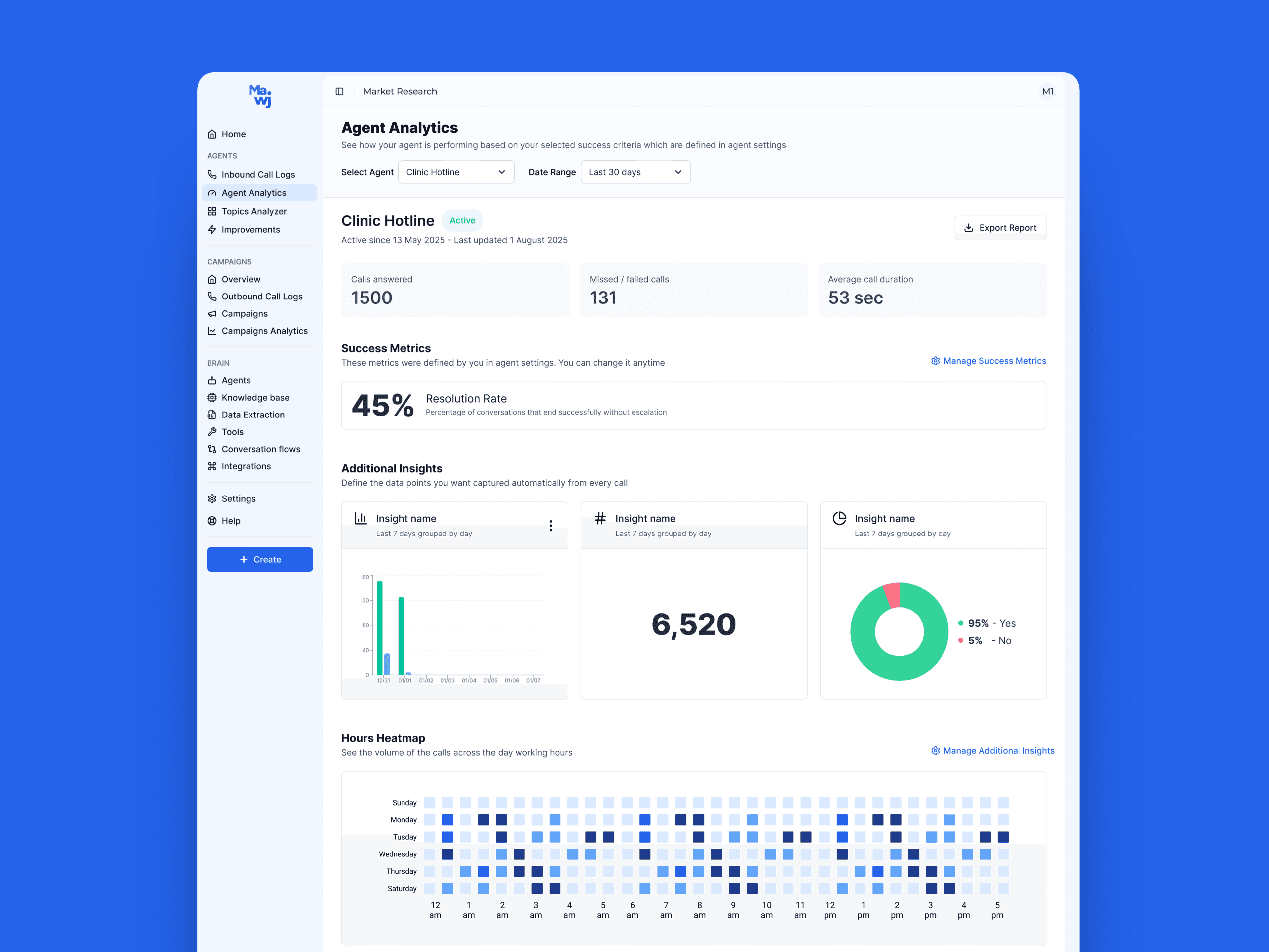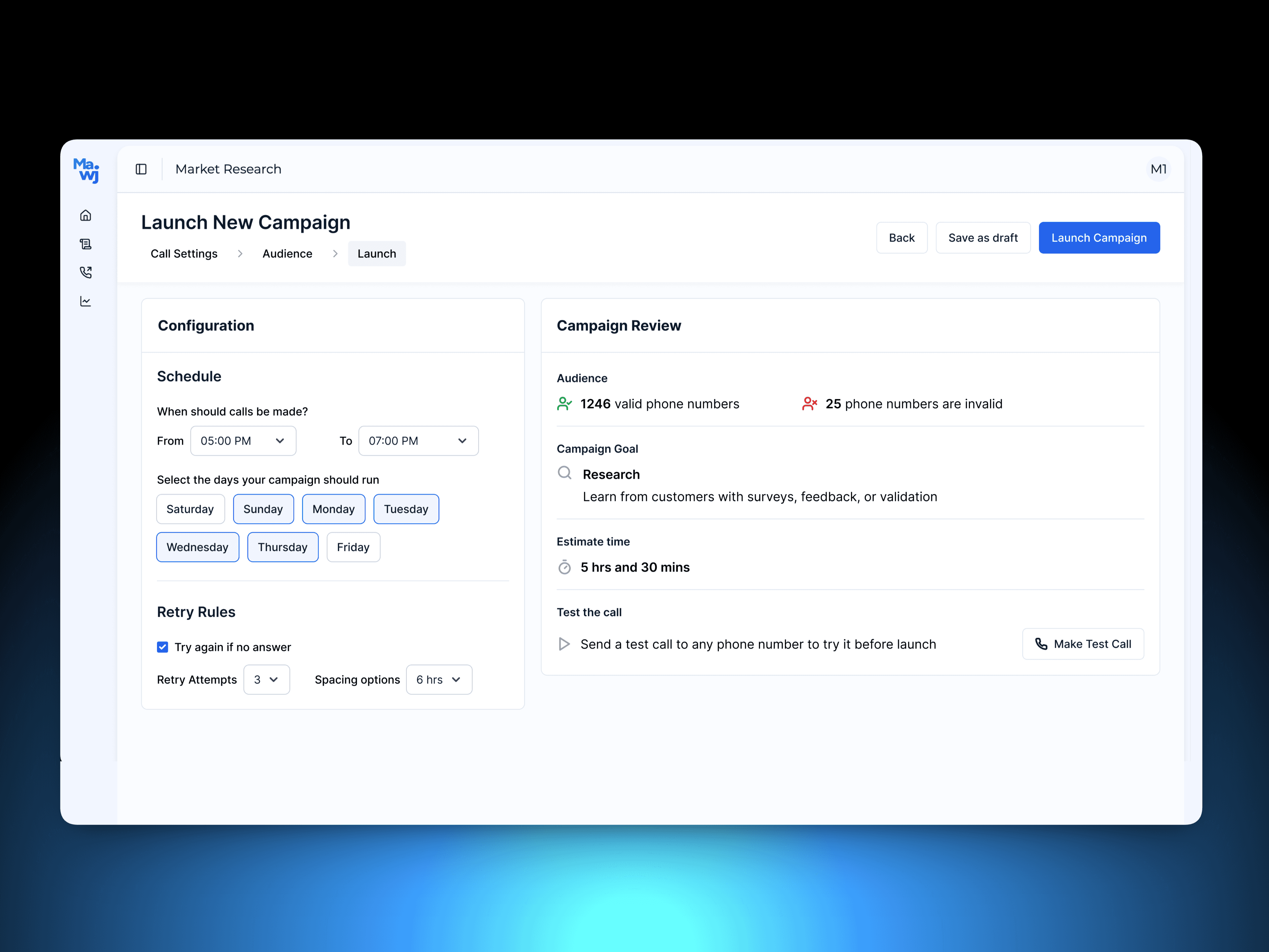 Teams needed a way to launch AI-powered calls easily, monitor performance clearly, and continuously improve agent behavior without technical complexity.