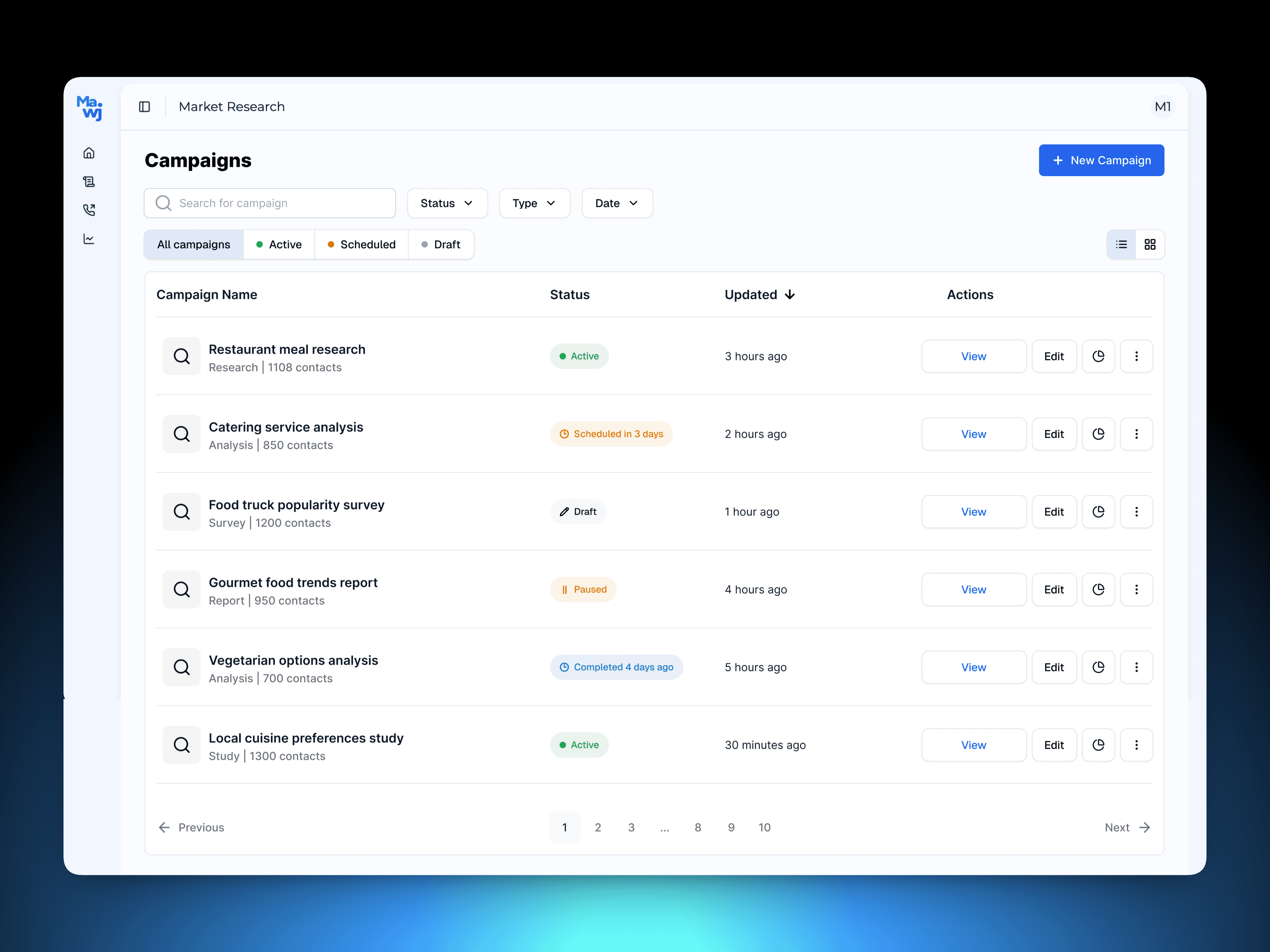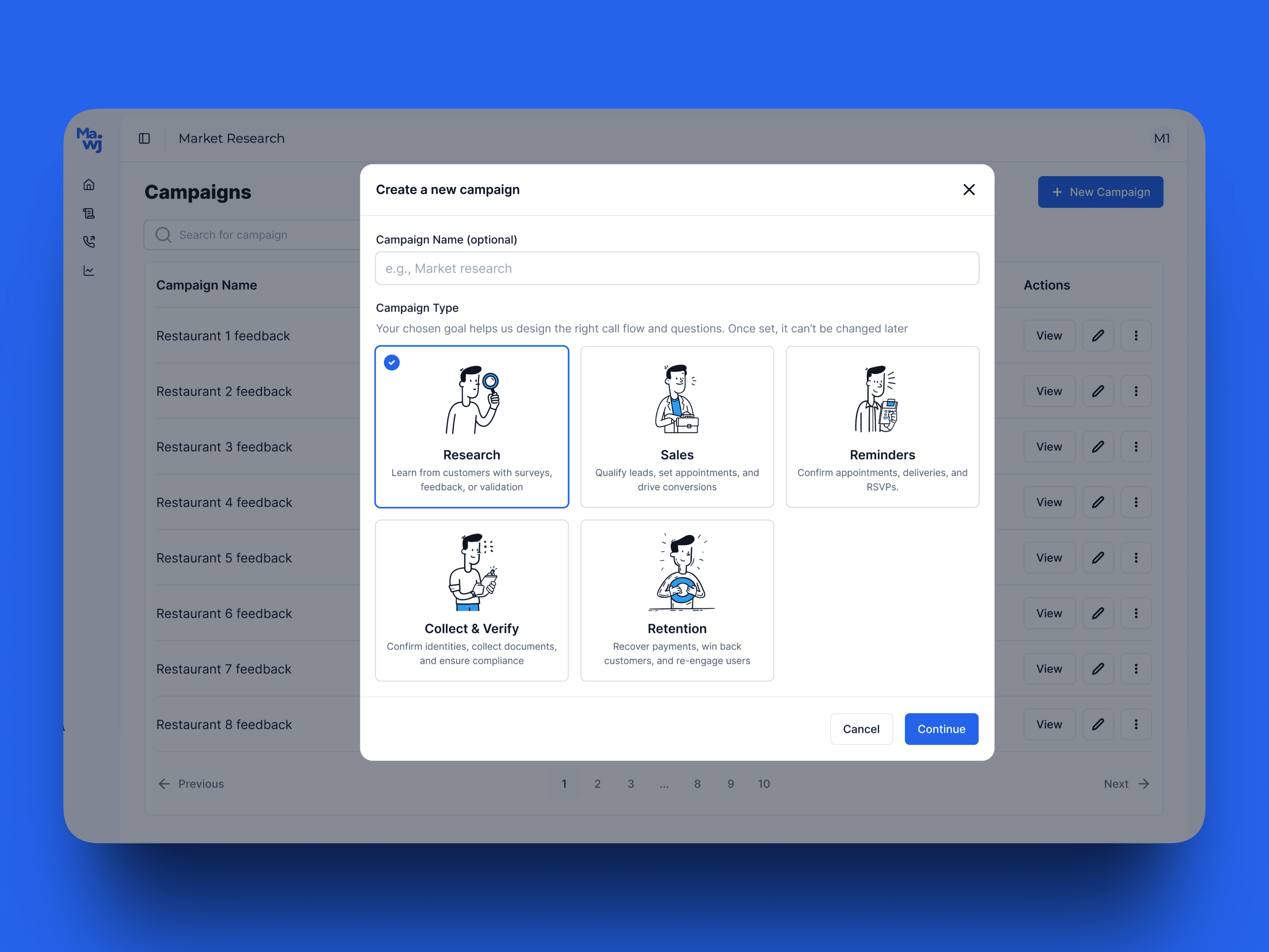 Campaign creation was simplified into a guided, prompt-based flow—allowing users to describe what they want in plain language and instantly generate AI call logic.