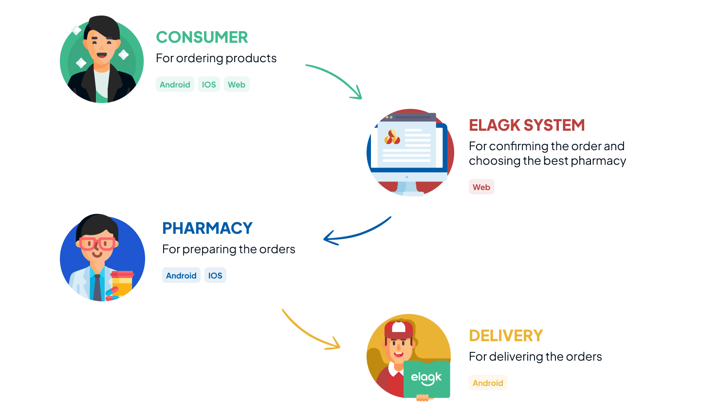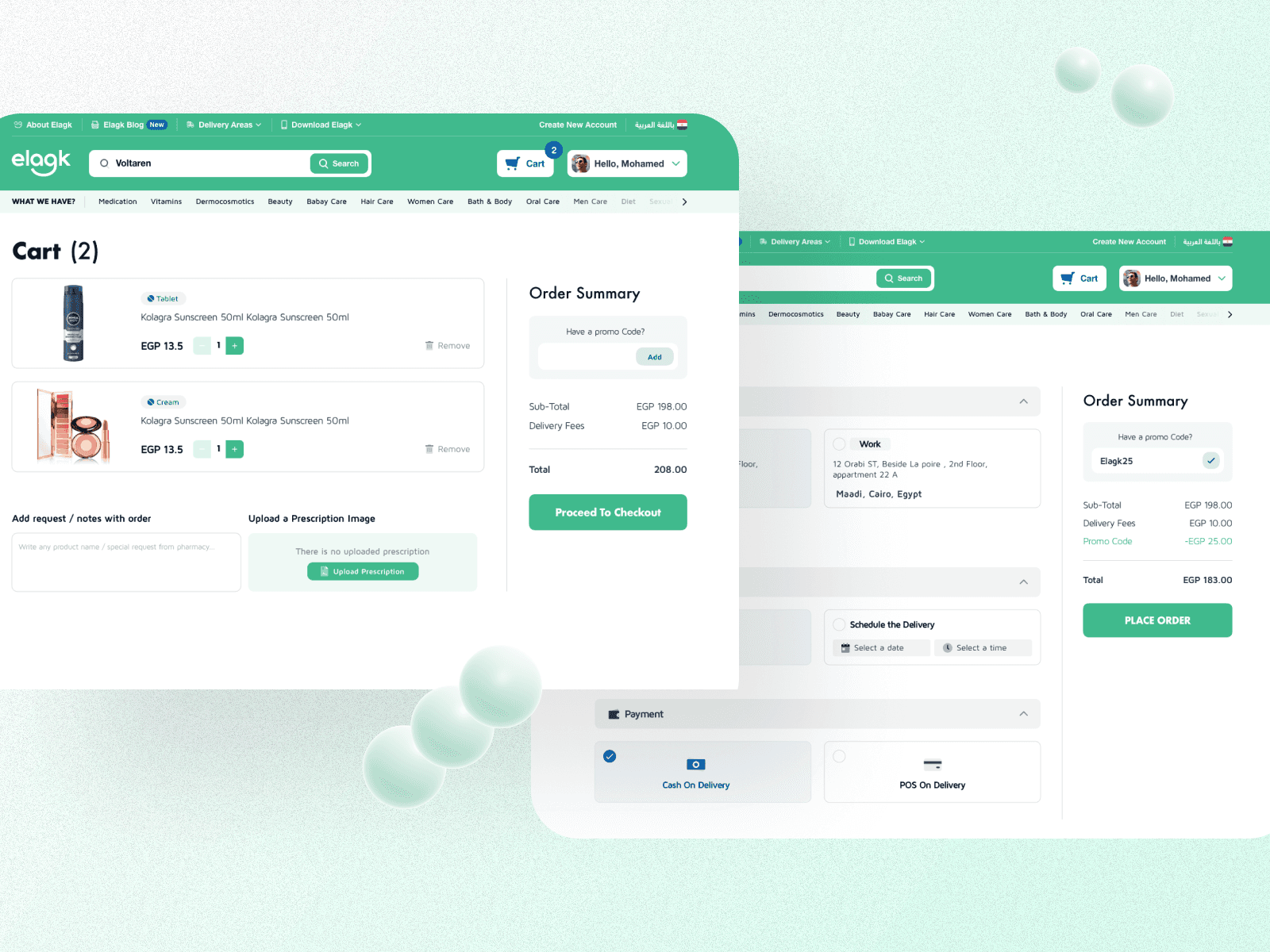 Making healthcare commerce faster, safer, and easier for customers, pharmacies, and couriers Elagk is a large-scale online pharmacy platform operating across Egypt, offering medications, beauty, and healthcare products through a connected ecosystem of applications. The system includes customer-facing web & mobile apps, a pharmacy operations app, and a courier delivery app, all working together to support high-volume, time-sensitive medical orders. This project spanned over two years, covering discovery, system design, and end-to-end product execution.