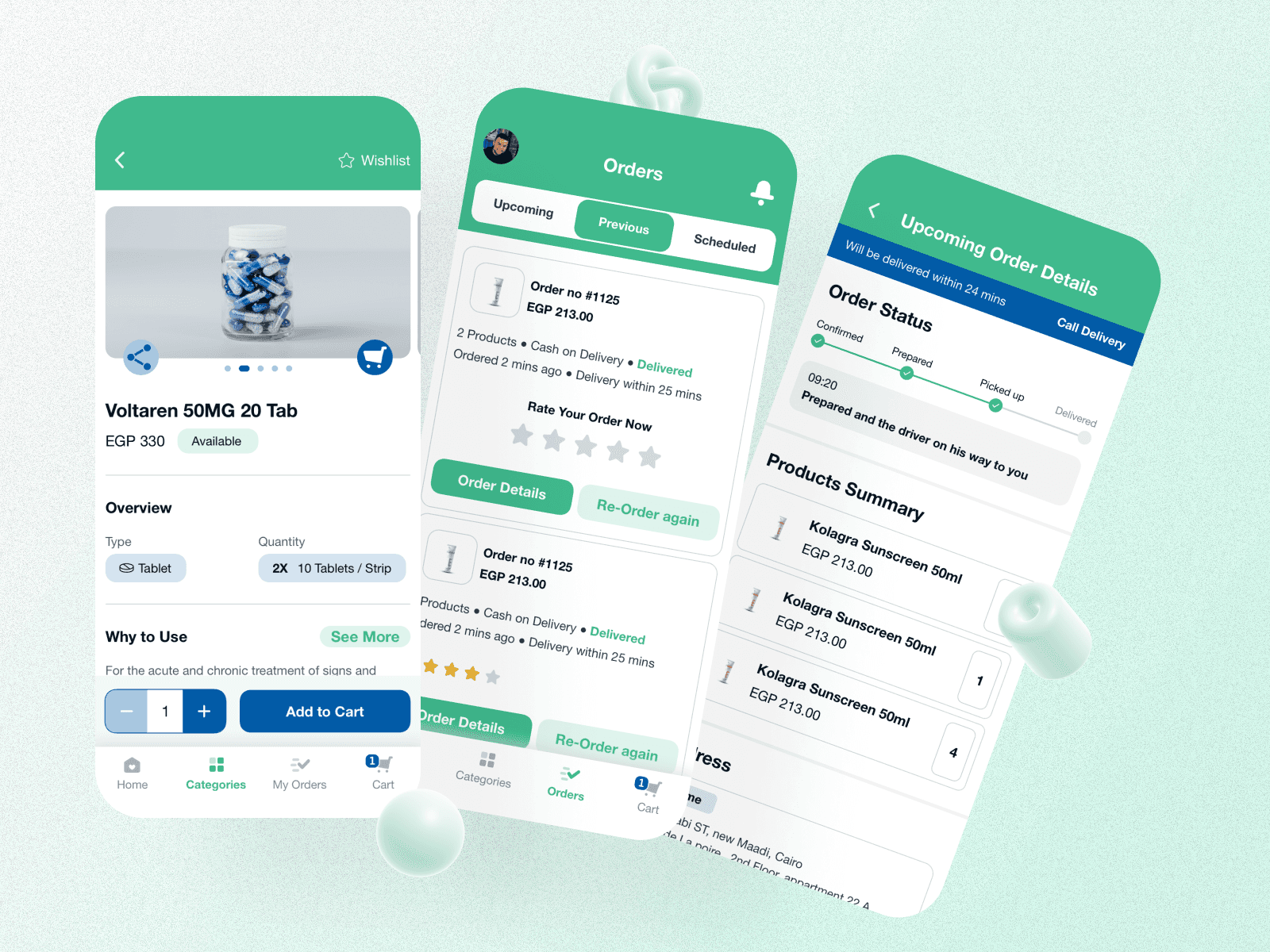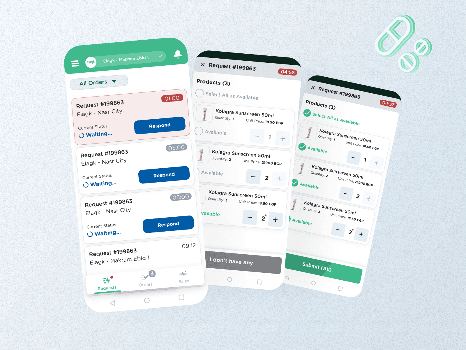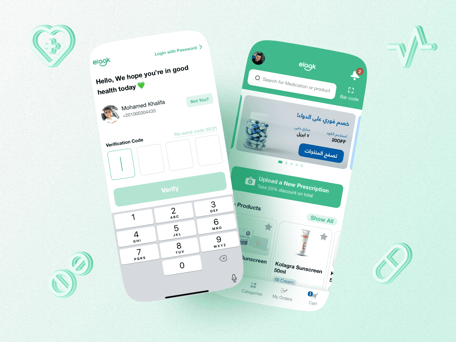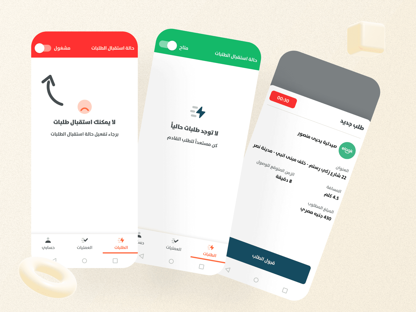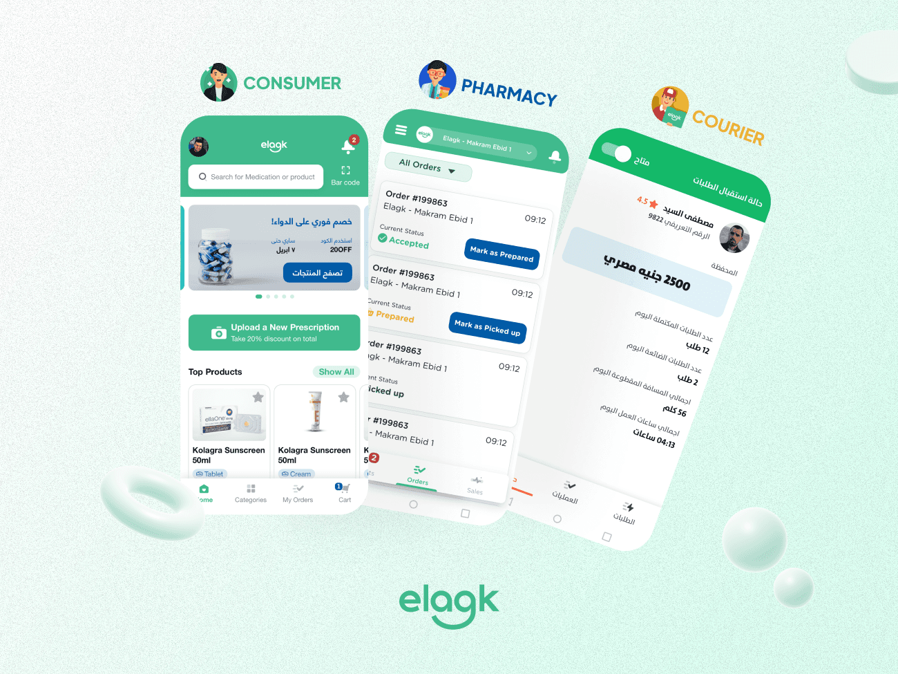 Customers can search, compare, upload prescriptions, track orders in real time, and reorder easily across web and mobile. Pharmacies receive, validate, and fulfill orders within time-boxed workflows, while couriers manage pickups, deliveries, and payments through a simplified, Arabic-first interface.