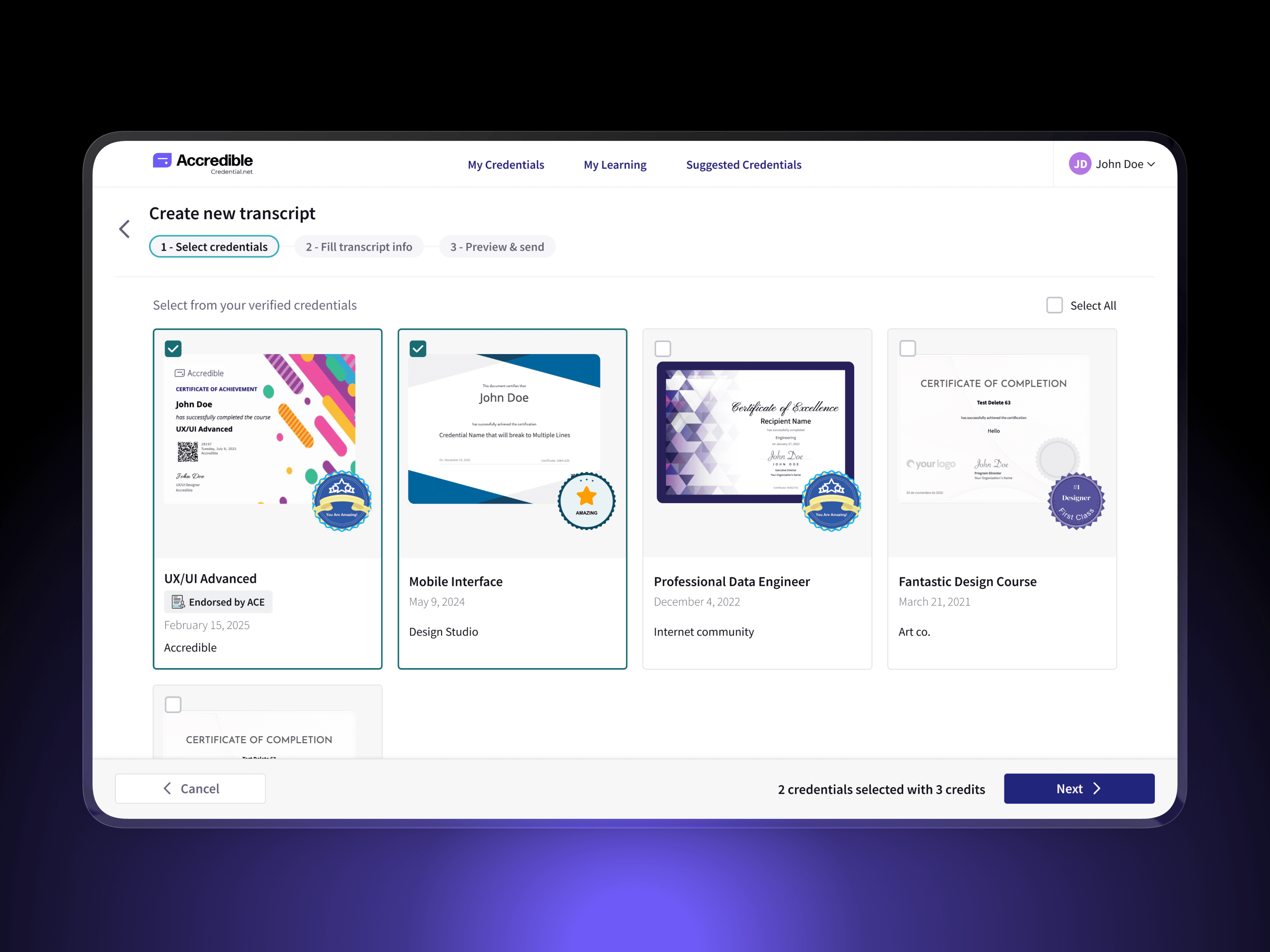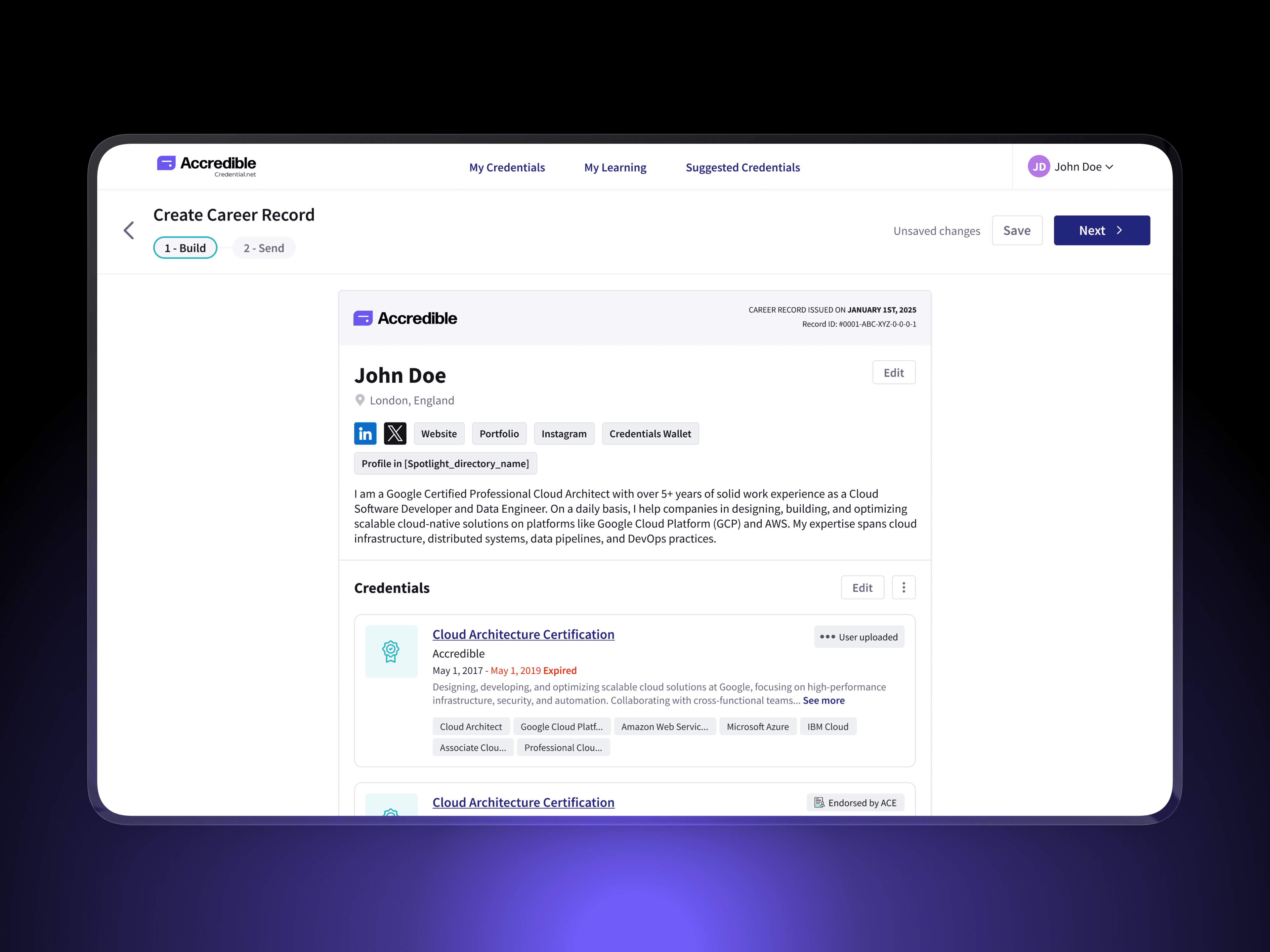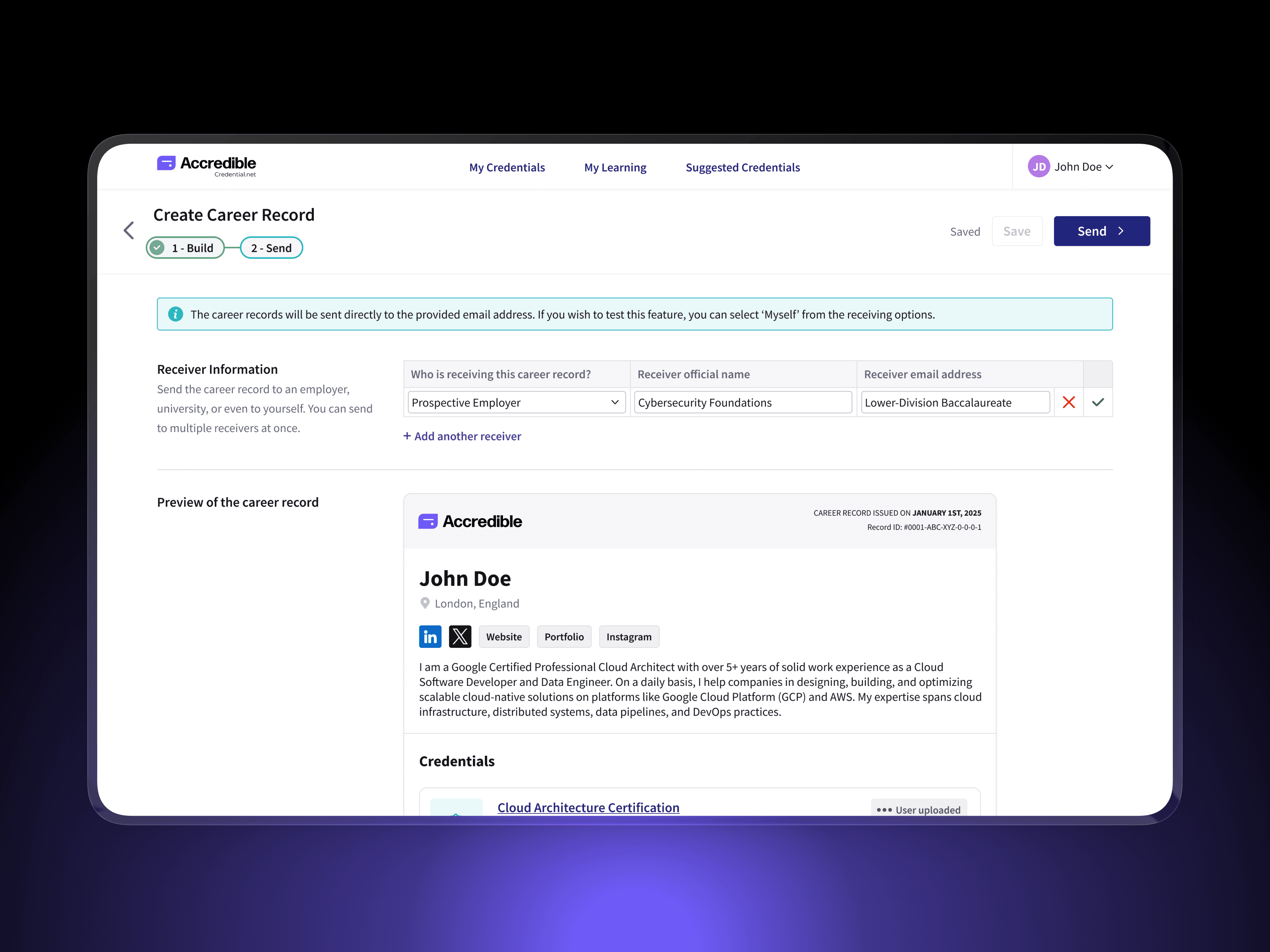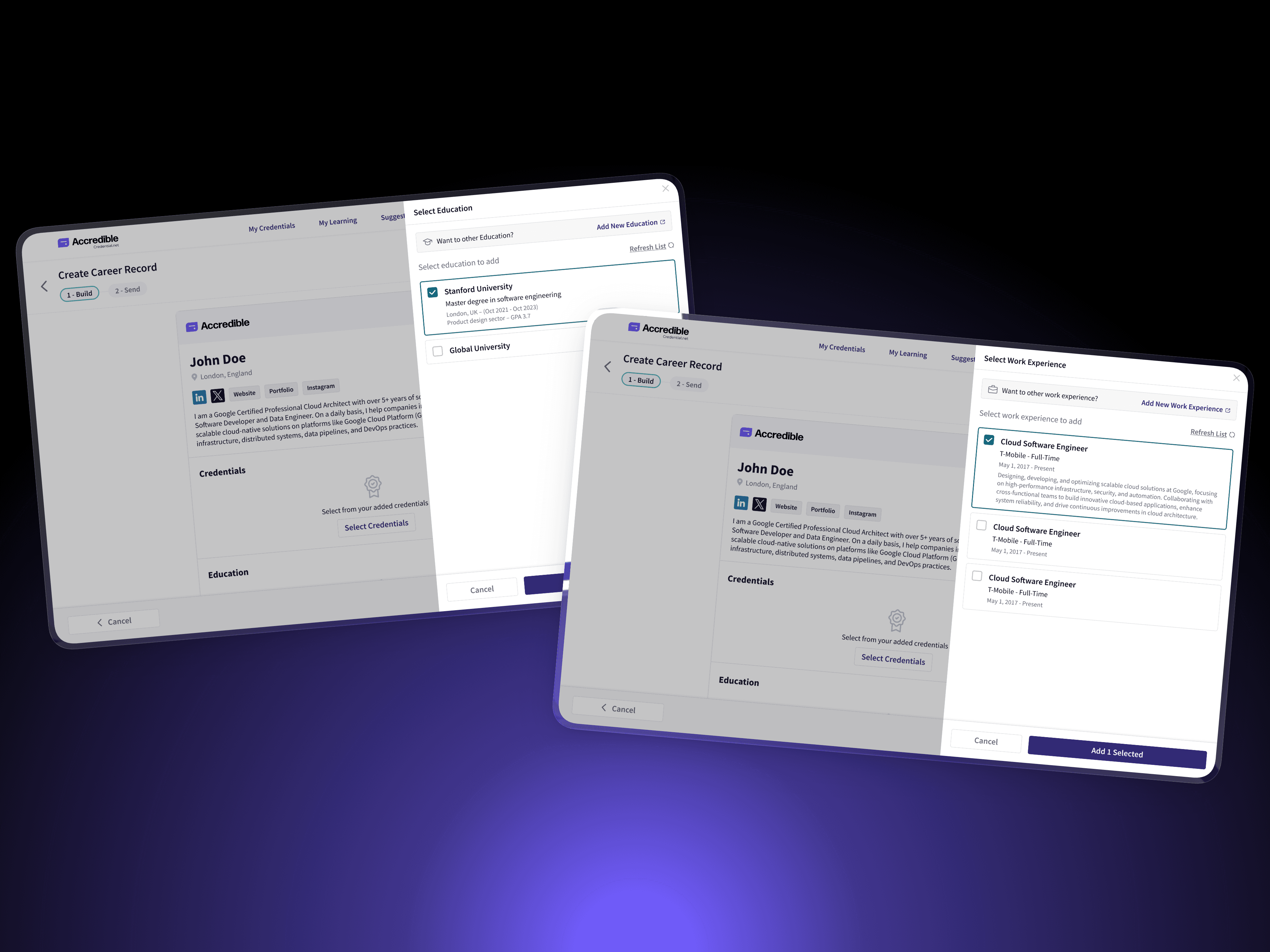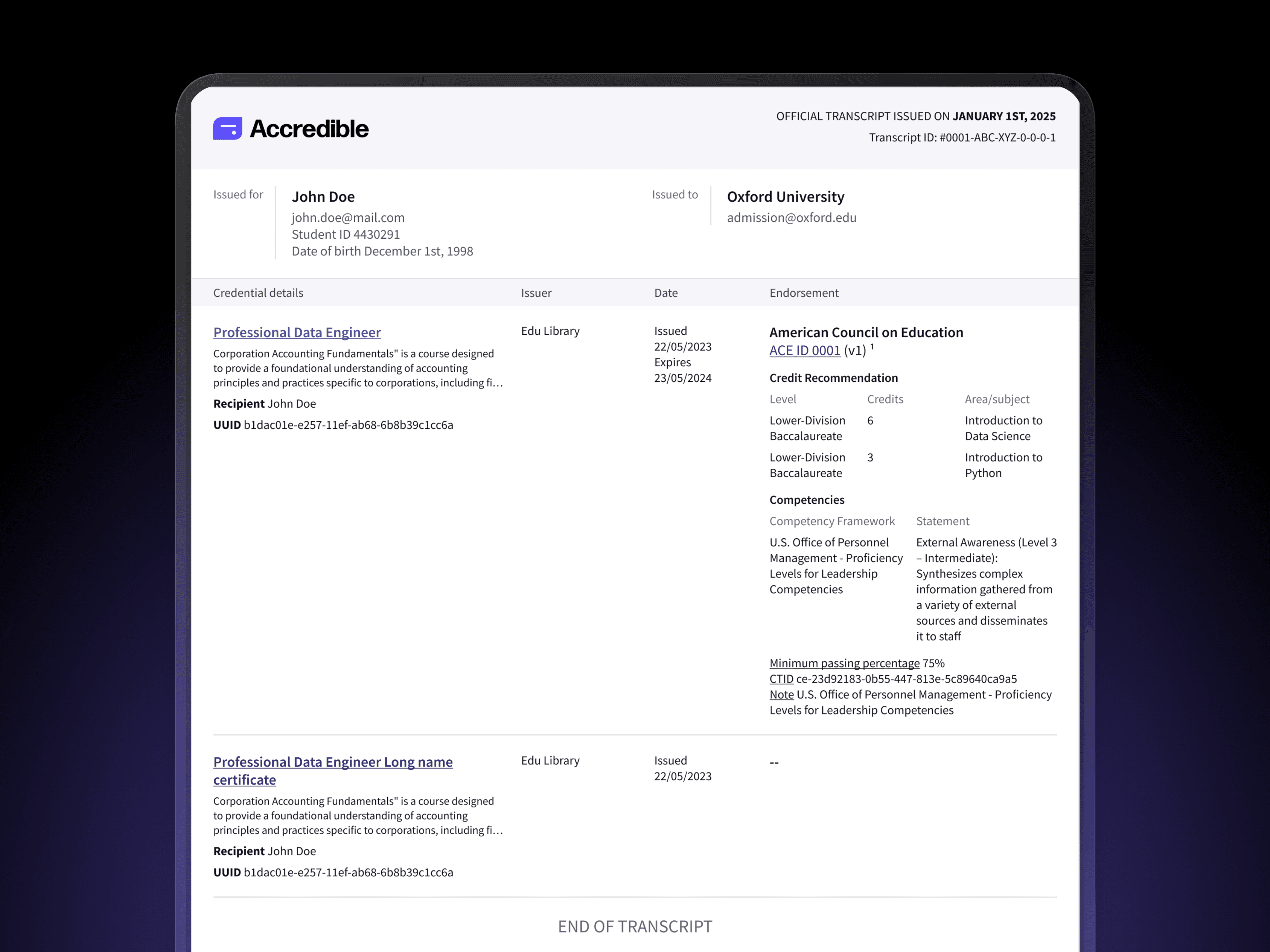 Establishing verified, institution-ready formats for sharing credentials at global scale This project introduced a new category of credential sharing within Accredible: Shared Records. It includes Digital Credential Transcripts for academic use and Verified Career Records for employment and professional review. Accredible operates at global scale, supporting 160M+ issued credentials, 30M+ learners, and 2,300+ organizations, where trust, verification, and clarity are critical. My Role | Senior Product Designer — end-to-end ownership
