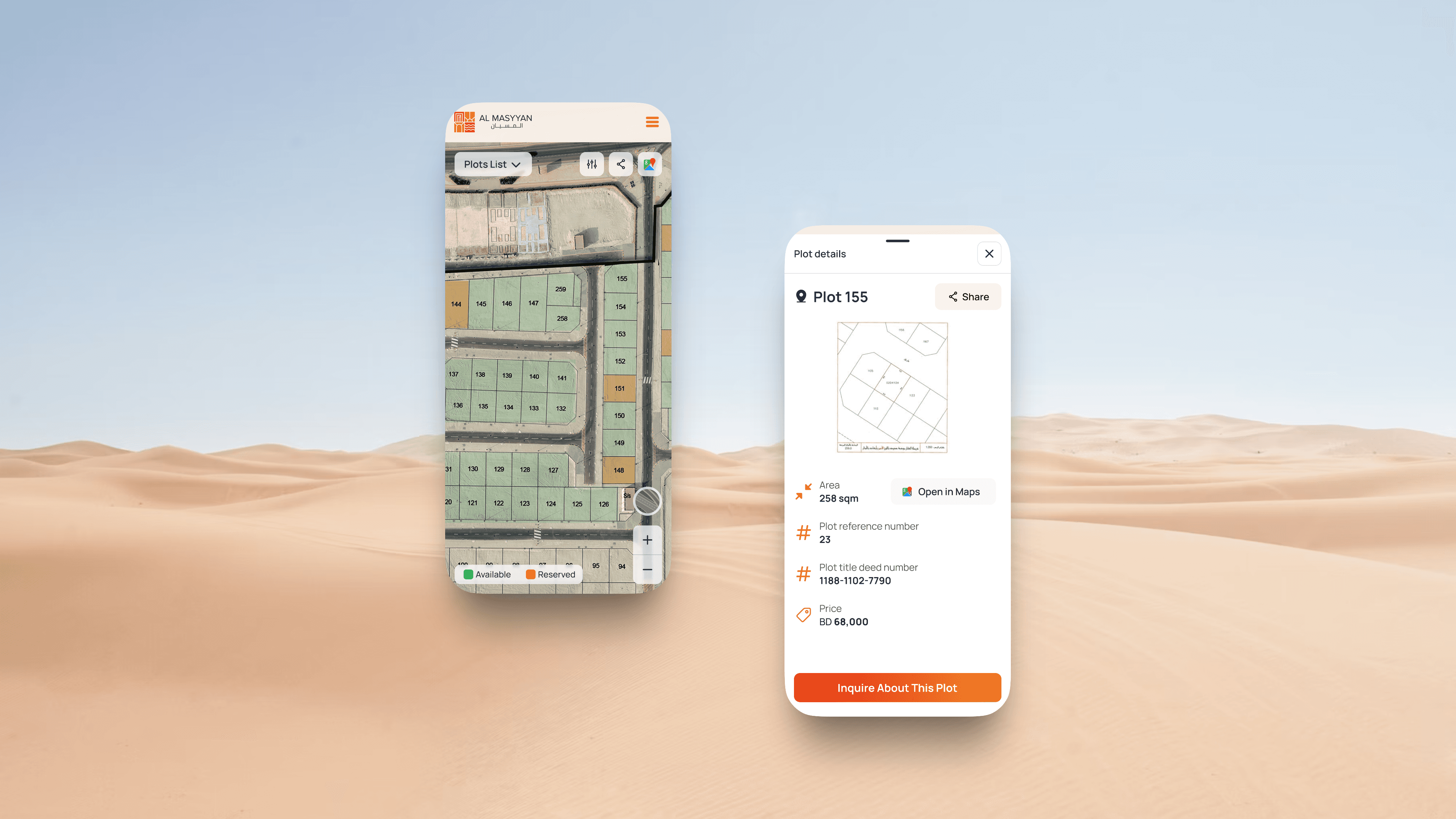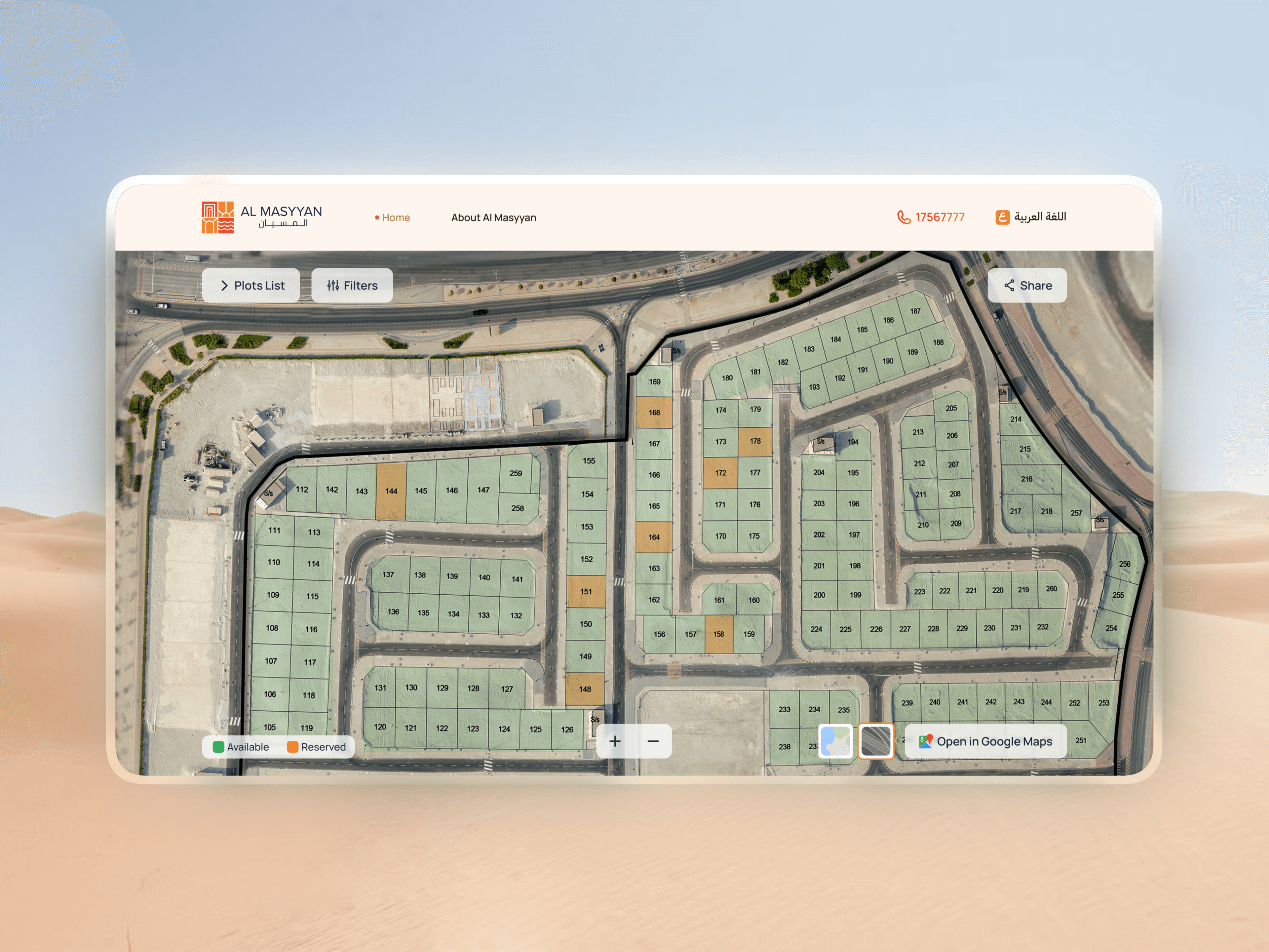 We designed a web experience centered around an interactive map that allows users to visually explore all available plots, zoom into specific areas, and instantly access key details for each land parcel. The interface prioritizes clarity, speed, and spatial awareness, enabling users to confidently select and inquire about plots directly from the map.